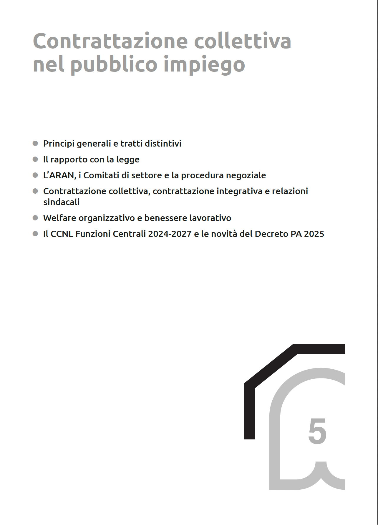 Capitolo 1 - Il pubblico impiego: nozione, evoluzione e fonti: 1.1 Nozione e principi costituzionali; 1.2 La privatizzazione del rapporto di pubblico impiego; 1.3 Categorie escluse dalla privatizzazione; 1.4 Il sistema delle fonti: Costituzione, fonti primarie e secondarie; 1.5 Il Regolamento degli uffici e dei servizi; 1.6 Il PNRR e la nuova visione del dipendente pubblico; 1.7 Le riforme dal 2024: quadro introduttivo. Capitolo 2 - Struttura organizzativa e funzioni nella PA: 2.1 Criteri di suddivisione degli atti; 2.2 L’inquadramento, le mansioni e le progressioni dei pubblici dipendenti; 2.3 Gli atti gestionali del datore di lavoro; 2.4 I criteri ispiratori; 2.5 Le funzioni di indirizzo e di gestione; 2.6 Le competenze dirigenziali e i relativi profili di responsabilità. Capitolo 3 - Accesso alla dirigenza: 3.1 Tipologie di accesso; 3.2 Qualifica e incarico dirigenziale. Capitolo 4 - Sistema di classificazione, valorizzazione delle competenze e innovazione nella PA: 4.1 La valorizzazione delle competenze e l’aggiornamento professionale; 4.2 Il nuovo sistema di classificazione nel pubblico impiego; 4.3 La digitalizzazione: il programma Syllabus e la trasformazione digitale nella PA; 4.4 Sicurezza, condivisione e servizi online nella PA digitale; 4.5 Riforma PA 2025-2027 e nuove professionalità digitali; 4.6 Una PA orientata all’innovazione; 4.7 Le nuove figure professionali digitali; 4.8 Dal fabbisogno al merito; 4.9 Il ruolo delle competenze trasversali nella PA. Capitolo 5 - Contrattazione collettiva nel pubblico impiego: 5.1 Principi generali e tratti distintivi; 5.2 Il rapporto con la legge; 5.3 L’ARAN, i Comitati di settore e la procedura negoziale; 5.4 Contrattazione collettiva, contrattazione integrativa e relazioni sindacali; 5.5 Welfare organizzativo e benessere lavorativo; 5.6 Il CCNL Funzioni Centrali 2024-2027 e le novità del Decreto PA 2025. Capitolo 6 - Rapporto di lavoro e flessibilità organizzativa: 6.1 Reclutamento e Portale inPA; 6.2 I vincoli assunzionali e le novità della Legge di bilancio 2025; 6.3 Mobilità, comando e collocamento fuori ruolo; 6.4 Contratto individuale e diritti del dipendente; 6.5 Flessibilità e lavoro a distanza: smart working, lavoro agile, telelavoro; 6.6 Le modificazioni del rapporto di impiego; 6.7 L’estinzione del rapporto di pubblico impiego; 6.8 Linee di indirizzo Brunetta (2022) e nuove famiglie professionali; 6.9 Il Piano Integrato di Attività e Organizzazione (PIAO). Capitolo 7 - Doveri, responsabilità e disciplina del dipendente pubblico:7.1 I principi costituzionali e il codice di comportamento; 7.2 Le responsabilità dei pubblici dipendenti; 7.3 Responsabilità civile, contrattuale e precontrattuale; 7.4 Responsabilità amministrativa e contabile; 7.5 Responsabilità per danno all’immagine digitale; 7.6 Responsabilità penale di natura corruttiva e tipologie di reato; 7.6.1 Il peculato; 7.6.2 L’indebita destinazione di denaro o cose mobili; 7.6.3 La concussione; 7.6.4 L’induzione indebita a dare o promettere utilità; 7.6.5 La corruzione; 7.6.6 Il traffico di influenze illecite; 7.6.7 La turbata libertà di incanti; 7.6.8 La turbata libertà del procedimento di scelta del contraente; 7.6.9 Circostanze e non punibilità; 7.7 Responsabilità disciplinare e procedimento; 7.8 Licenziamento e falsa attestazione della presenza in servizio. Capitolo 8 - Etica, prevenzione e trasparenza: 8.1 Etica pubblica e codici etici; 8.2 Etica pubblica e intelligenza artificiale; 8.3 Trasparenza e anticorruzione; 8.4 Le misure di prevenzione della corruzione; 8.5 Il whistleblowing e le altre misure preventive; 8.6 Il conflitto di interessi; 8.7 La rotazione del personale e il divieto di pantouflage. Capitolo 9 - Controlli interni e valutazione della performance: 9.1 Tipologie e finalità dei controlli interni; 9.2 Il ciclo della performance e gli OIV; 9.3 Performance organizzativa e individuale; 9.4 L’importanza della Direttiva ministeriale 28 novembre 2023 e gli ultimi aggiornamenti in materia; 9.5 Contabilità analitica e valorizzazione economica dei risultati. Capitolo 10 - Contenzioso e giurisdizione: 10.1 Le giurisdizioni competenti (art. 63, D.lgs. 165/2001); 10.2 Conciliazione, negoziazione assistita e arbitrato; 10.3 Contenzioso in materia di discriminazione; 10.4 Digitalizzazione del contenzioso nel pubblico impiego. Appendice normativa e riforme recenti: DPR 82/2023 sui concorsi pubblici; Decreto PA 2025: semplificazione, smart working, digitalizzazione; Legge di Bilancio 2025: assunzioni e ricambio generazionale; Riforma PA 2025–2027: Syllabus, nuove competenze, reclutamento digitale; Sintesi delle principali fonti aggiornate. Indice analitico
