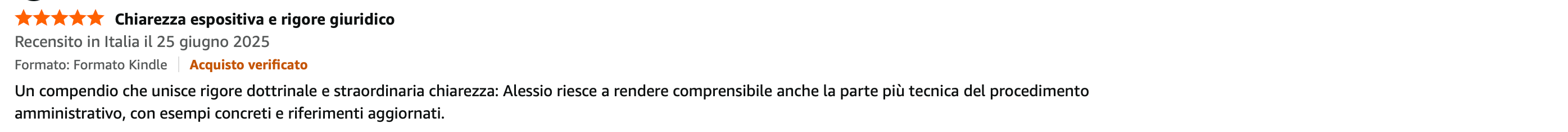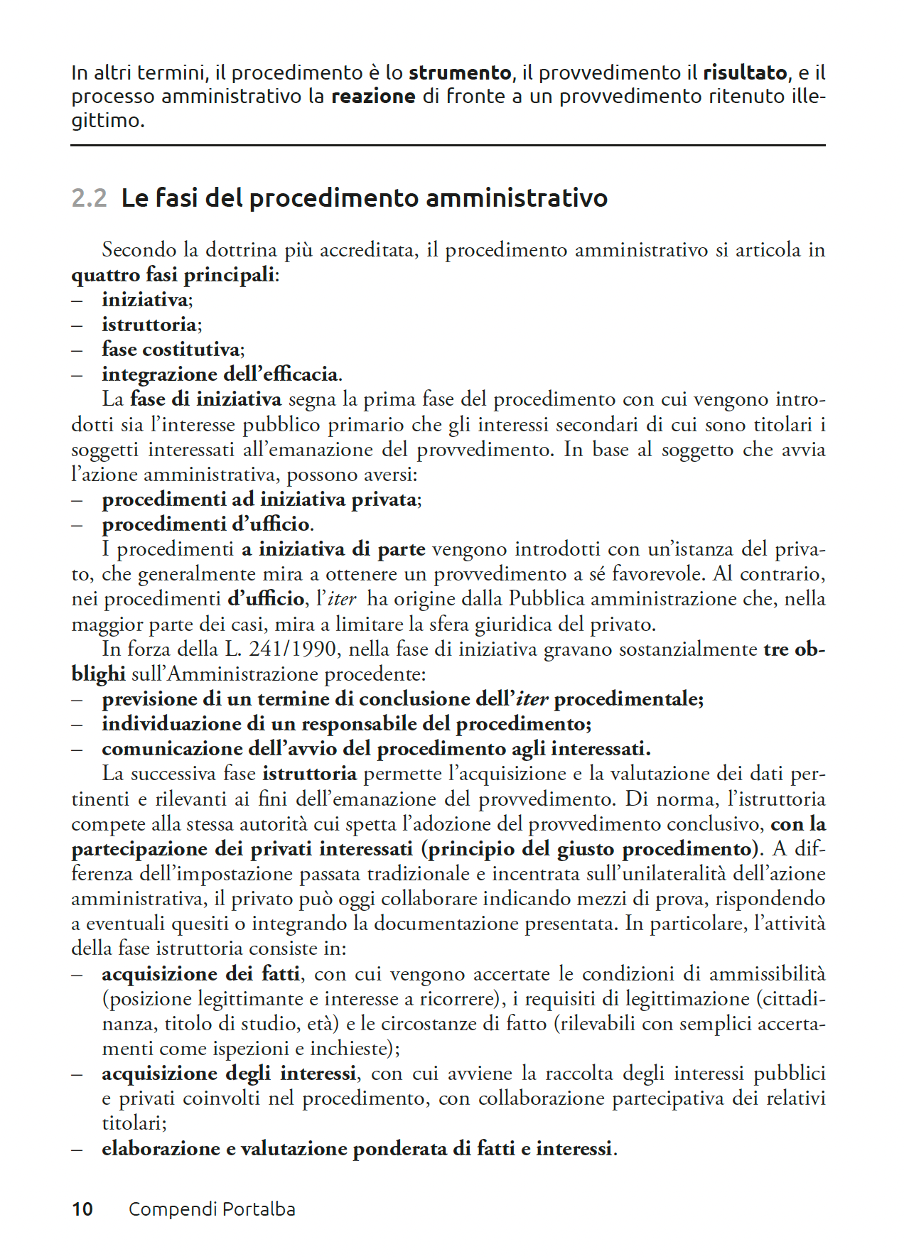 1 - L’attività amministrativa: 1.1 Introduzione all’attività amministrativa; 1.2 Attività amministrativa vincolata e discrezionale; 1.2.1 Discrezionalità tecnica e discrezionalità mista; 1.3 Principi dell’attività amministrativa: una sintesi. 2 - Il procedimento amministrativo: 2.1 Introduzione al procedimento amministrativo; 2.2 Le fasi del procedimento amministrativo; 2.3 I termini procedimentali; 2.3.1 Inosservanza del termine di conclusione del procedimento; 2.4 Il responsabile del procedimento; 2.5 Gli istituti di partecipazione al procedimento; 2.5.1 La comunicazione di avvio del procedimento; 2.5.2 Il diritto di intervento; 2.5.3 I diritti dei partecipanti al procedimento amministrativo; 2.5.4 Il preavviso di rigetto; 2.5.5 I provvedimenti attributivi di vantaggi economici. 3 - La semplificazione dell’azione amministrativa: 3.1 Introduzione alla semplificazione amministrativa; 3.2 La conferenza di servizi; 3.3 Il silenzio devolutivo; 3.4 L’autocertificazione; 3.5 La presentazione di istanze, segnalazioni o comunicazioni; 3.6 Il silenzio assenso; 3.7 La Segnalazione Certificat di Inizio Attività (SCIA); 3.8 Gli accordi; 3.8.1 Gli accordi integrativi e sostitutivi del provvedimento; 3.8.2 Gli accordi tra Amministrazioni e gli accordi di programma; 3.9 La digitalizzazione della P.A. 4 - Il provvedimento amministrativo: 4.1 L’atto e il provvedimento amministrativo; 4.1.1 Gli elementi dell’atto amministrativo; 4.1.2 La motivazione del provvedimento amministrativo; 4.1.3 I requisiti di legittimità e di efficacia del provvedimento amministrativo; 4.2 Il silenzio amministrativo; 4.3 Le principiali tipologie di provvedimenti amministrativi; 4.3.1 Le autorizzazioni; 4.3.2 Le concessioni; 4.4 I provvedimenti ablatori; 4.4.1 L’espropriazione; 4.5 Gli atti amministrativi diversi dai provvedimenti. 5 - Le patologie dell’atto amministrativo: 5.1 Gli stati patologici dell’atto amministrativo; 5.2 L’invalidità dell’atto amministrativo; 5.2.1 La nullità dell’atto amministrativo; 5.2.2 L’annullabilità dell’atto amministrativo; 5.3 L’inopportunità dell’atto amministrativo; 5.4 I rimedi contro gli atti viziati; 5.5 L’autotutela amministrativa; 5.5.1 L’annullamento d’ufficio; 5.5.2 La revoca; 5.6 La sanatoria degli atti amministrativi viziati. 6 - La documentazione amministrativa: 6.1 Introduzione alla documentazione amministrativa; 6.2 I destinatari del D.P.R. 445/2000; 6.3 L’autocertificazione; 6.4 La dichiarazione sostitutiva di atto di notorietà; 6.5 Gli atti pubblici; 6.6 Le istanze; 6.7 I certificati; 6.8 Il ruolo del Codice dell’Amministrazione Digitale (CAD) nella documentazione amministrativa; 6.8.1 La firma digitale; 6.8.2 Il documento informatico; 6.8.3 La trasmissione del documento informatico; 6.8.4 La gestione documentale e il protocollo informatico; 6.8.5 Conservazione digitale e archiviazione elettronica. 7 - Il diritto di accesso: 7.1 Definizione e caratteristiche del diritto di accesso; 7.2 Limitazioni ed esclusioni del diritto di accesso; 7.3 Le modalità di esercizio del diritto di accesso; 7.4 La tutela del diritto di accesso; 7.5 L’accesso civico semplice e l’accesso civico generalizzato; 7.6 Il rapporto tra diritto di accesso e diritto alla riservatezza. 8 - La protezione dei dati personali; 8.1 Dalla privacy alla protezione dei dati personali; 8.2 Il Garante per la protezione dei dati personali; 8.3 La nozione di dato personale; 8.4 Il trattamento dei dati personali; 8.4.1 Il trattamento dei dati personali effettuato da un soggetto pubblico; 8.4.2 Il trattamento delle categorie particolari di dati personali; 8.5 I diritti del titolare dei dati; 8.6 I soggetti del trattamento dei dati personali; 8.6.1 Il titolare del trattamento; 8.6.2 Il responsabile del trattamento; 8.6.3 Il responsabile della protezione dei dati; 8.7 La violazione dei dati personali. 9 - Il sistema anticorruzione: 9.1 Definizione di corruzione e sistema normativo; 9.2 La governance nazionale; 9.3 La governance decentrata; 9.4 L’Autorità Nazionale Anticorruzione (ANAC); 9.5 Il Responsabile della Prevenzione della Corruzione e della Trasparenza (RPCT); 9.6 La pianificazione; 9.6.1 Il Piano Nazionale Anticorruzione (PNA); 9.6.2 Il Piano Triennale di Prevenzione della Corruzione e della Trasparenza (PTPCT); 9.6.3 Il Piano Integrato di Attività e Organizzazione (PIAO); 9.6.4 La struttura-tipo del Piano di prevenzione; 9.6.5 Il risk management e le fasi di gestione del rischio; 9.6.6 Le principali misure di prevenzione della corruzione; 9.6.7 I codici di comportamento; 9.6.8 La rotazione del personale; 9.6.9 La formazione del personale; 9.6.10 La prevenzione e la gestione del conflitto di interessi; 9.6.11 L’inconferibilità e l’incompatibilità degli incarichi; 9.6.12 Il divieto di pantouflage; 9.6.13 La tutela del segnalante (cd. “whistleblower”). 10 - La trasparenza: 10.1 La nozione di trasparenza; 10.2 La pubblicazione dei dati; 10.3 Il diritto di accesso documentale; 10.4 L’accesso civico “semplice” e l’accesso civico generalizzato; 10.5 La violazione degli obblighi di pubblicazione: 11 - Il sistema dei controlli: 11.1 La nozione di controllo; 11.1.1 I controlli amministrativi; 11.2 I controlli sugli atti; 11.3 I controlli sugli organi; 11.4 I controlli sull’attività; 11.4.1 I controlli interni; 11.4.2 I controlli esterni. 12 - Cenni di giustizia amministrativa: 12.1 Introduzione alla giustizia amministrativa; 12.2 La tutela amministrativa; 12.2.1 Il ricorso gerarchico; 12.2.2 Il ricorso in opposizione e il ricorso straordinario al Presidente della Repubblica; 12.3 La tutela giurisdizionale amministrativa; 12.4 La giurisdizione amministrativa; 12.4.1 La giurisdizione generale di legittimità; 12.4.2 La giurisdizione di merito; 12.4.3 La giurisdizione esclusi va; 12.5 Le azioni esperibili innanzi al giudice amministrativo; 12.6 Il processo amministrativo; 12.6.1 Cenni sullo svolgimento del giudizio; 12.6.2 Il giudizio di ottemper